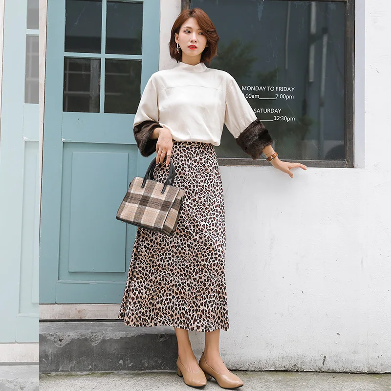 Images of Free Shipping 2019 XS-10XL Fashion Long Maxi A-line Skirts For Women Elastic Waist Winter Customzied Velour Leopard Velvet Skirt :