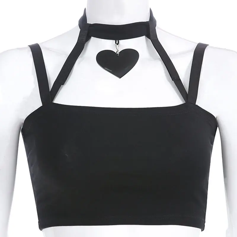 Images of Fashion Halter Tank Top Women Hollow Out Crop Tops 2019 Summer Gothic Heart Pentagram Black Streetwear Backless Sexy Camis Top :
